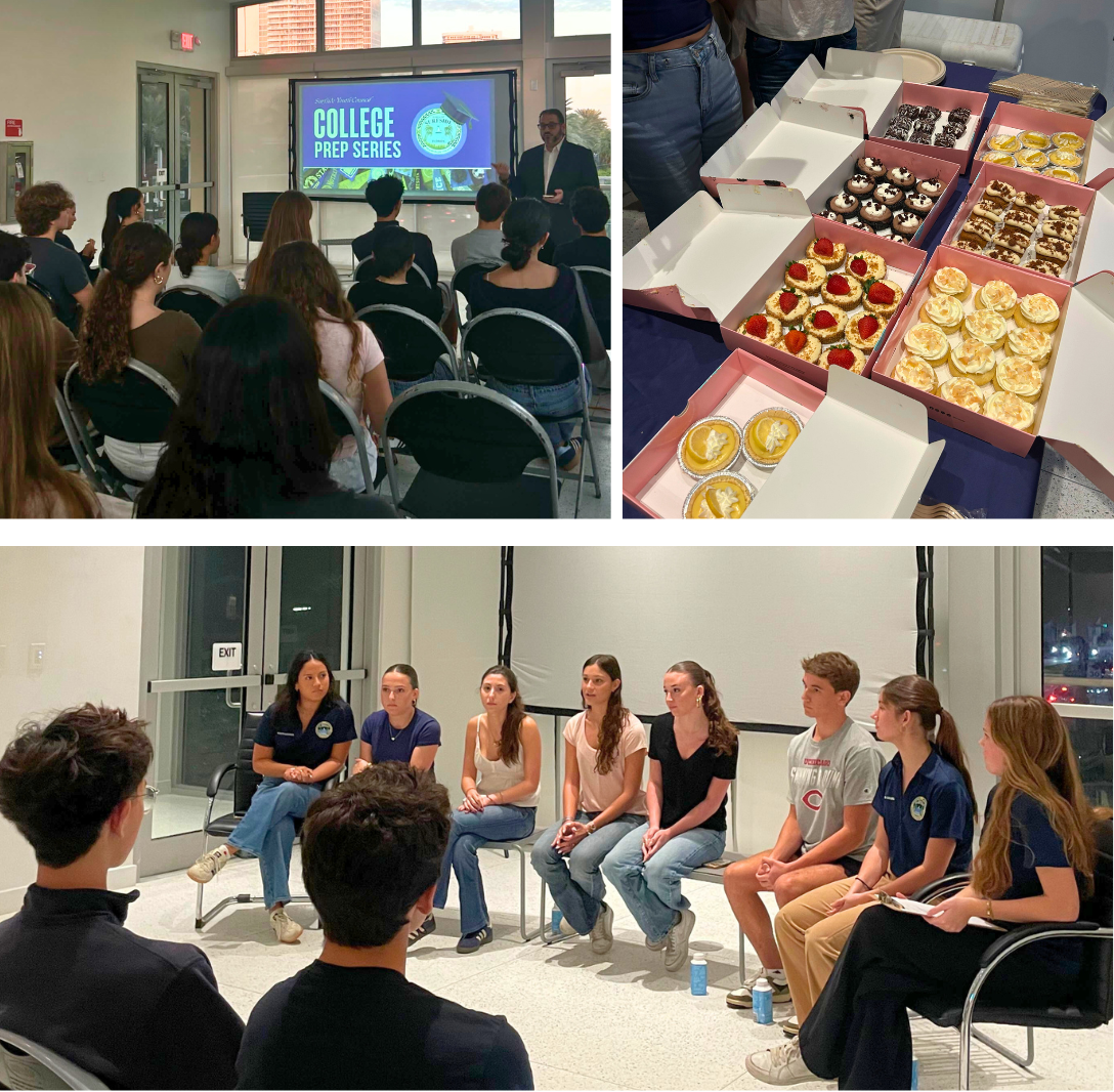 Miami Beach Senior High CAP Advisor Kenny Cabera led the presentation, offering practical advice and insight into navigating applications, essays, and scholarship opportunities. Following his talk, attendees participated in a Q&A session with current seniors who shared their firsthand experiences preparing for college.